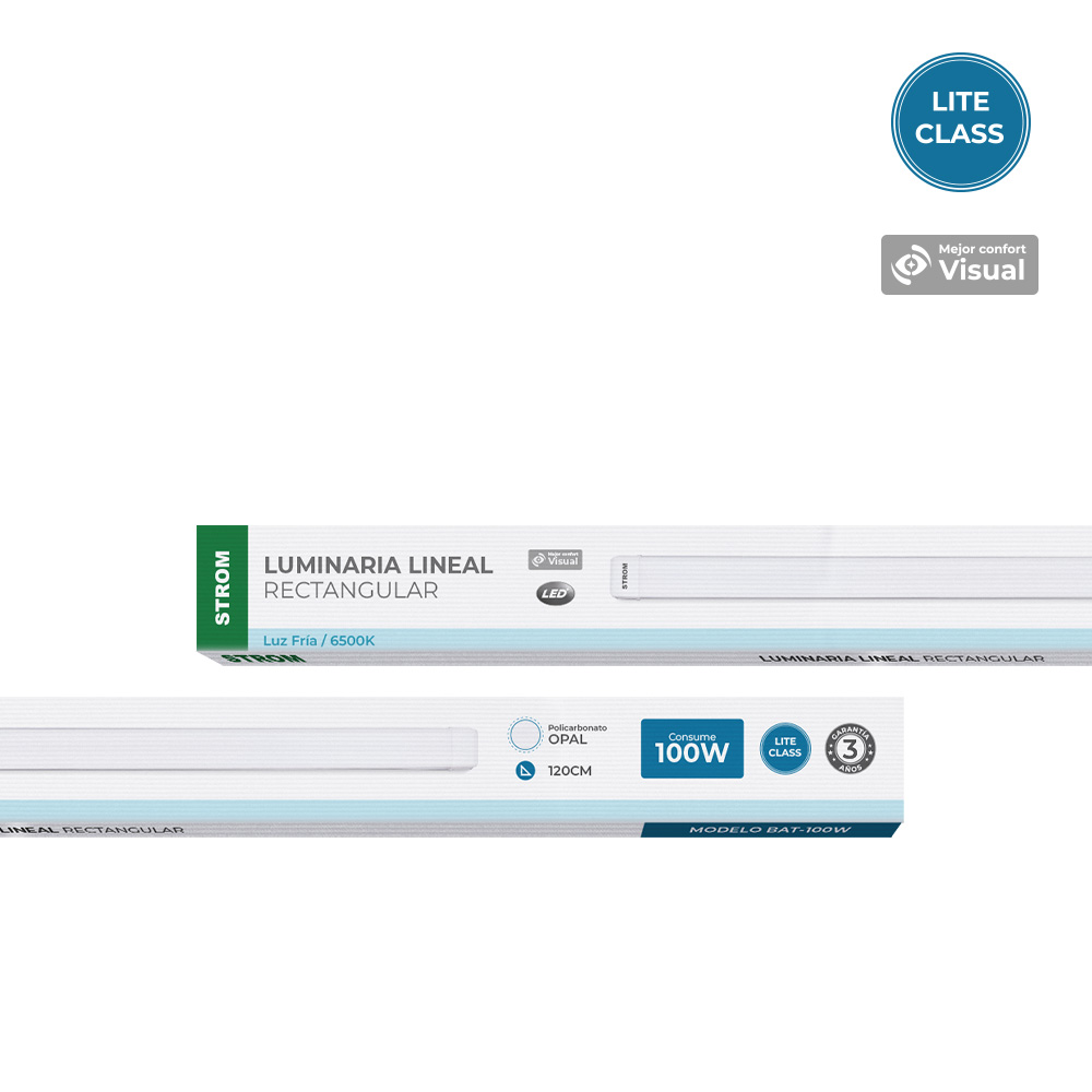 La luminaria lineal LED STROM de 100W con cubierta opal es una solución eficiente y versátil para iluminación general. Ofrece hasta 86% de ahorro energético, 25,000 horas de vida útil y luz blanca de 6500K con distribución uniforme que mejora la visibilidad y el confort visual.