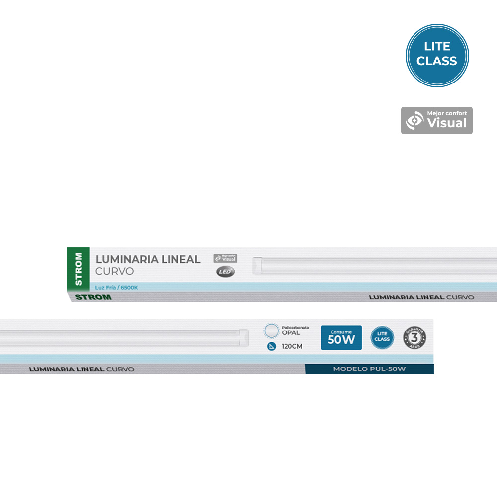Las luminarias lineales curvo LED STROM son una solución eficiente, durable y confiable para proyectos residenciales y comerciales. Ofrecen una vida útil de 25,000 horas y una temperatura de color de 6500K con distribución uniforme que mejora la visibilidad y el confort visual.