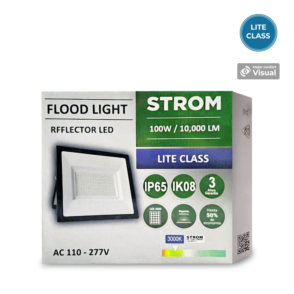 El Reflector LED de 100 W con 1,000 Lm de intensidad lumínica y luz cálida de 3000 K es la opción ideal para espacios como jardines, patios o áreas de trabajo. Con su potencia y eficiencia, este reflector proporciona una iluminación potente y clara, asegurando una visibilidad óptima en espacios amplios. Su grado de protección IP65 lo hace resistente al agua y al polvo, lo que lo convierte en una solución confiable y duradera para cualquier entorno exterior.